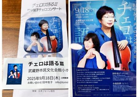「チェロは語るⅢ」田中友子さん 武蔵野市民文化会館小ホールへ 重厚なチェロの音色 続きを読む 「チェロは語るⅢ」田中友子さん