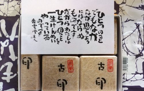 ひとつのことでもなかなか思うようにはならぬものですだからわたしはひとつのことを一生けんめいやっているのですあいだみつお氏が書かれた詩が入っている古印もなか(*^_^*)オイシイ~♪栃木県足利市にには和菓…