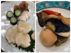 煮物のお通しとお新香にお刺身などお酒がすすむ(#^.^#)オイシイ~♪