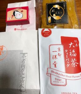 戴いたのは京都一保堂の大福茶と茨城OIMOYA紅はるかの干し芋