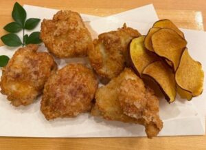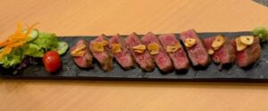 松阪特産牛イチボ のレアステーキと伊勢湾特産天然ふぐの唐揚げを注文