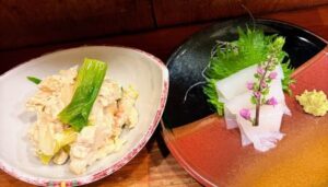 河豚の白子焼にあん肝バター焼きやフグ唐揚げやクジラの網焼きなど